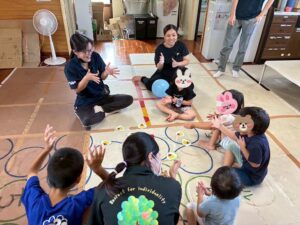 10月に入り、朝夕が少し涼しくなり過ごしやすくなってきましたね♪ 涼しい時間帯には虫取りができたりと活動の場が少しづつ広がっていることのは1号館ですが、暑い時期、外遊びがなかなかできない状況で、室内で楽しく過ごす為に行った小集団での遊びやレク活動を今回はご紹介したいと思います😊